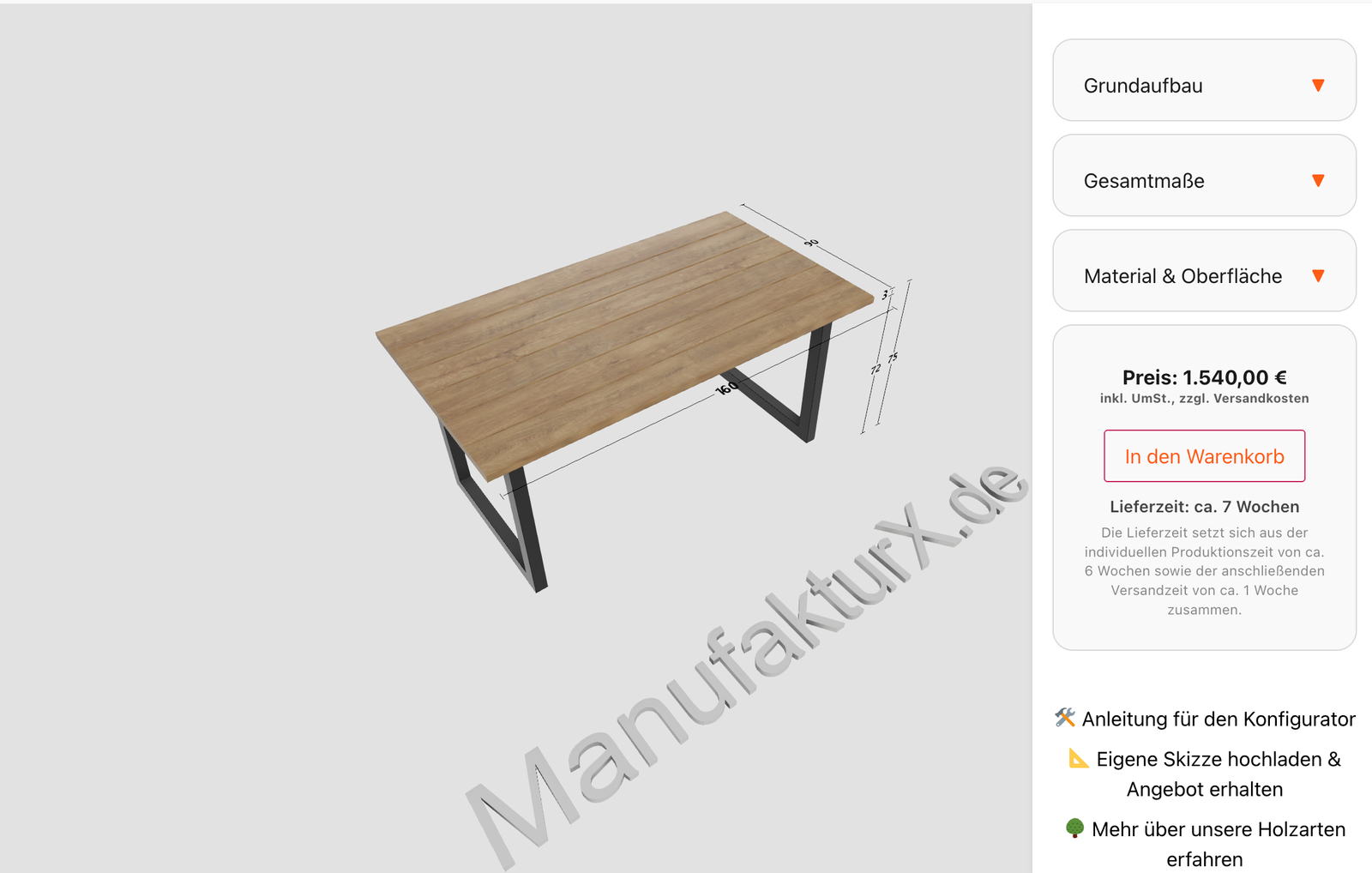 Hvert stykke fremstilles efter dine mål. Konfigurer i 3D og bestil direkte.